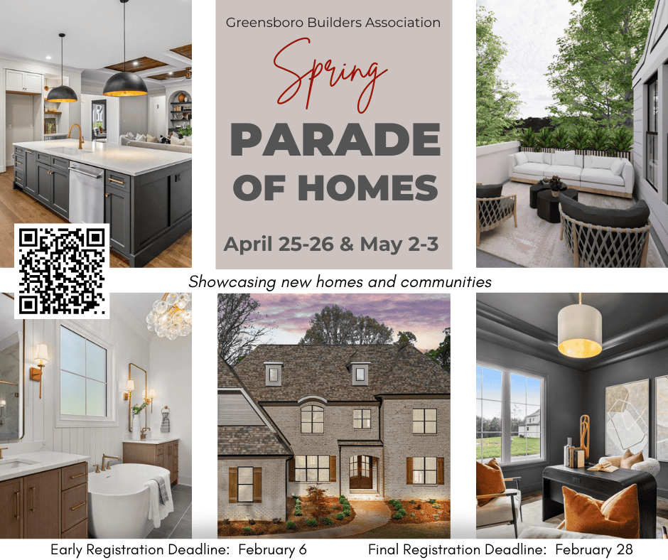 It's the final few weeks to register for the 2026 Spring Parade of Homes to be held April 25-26 & May 2-3...showcasing newly constructed homes and new neighborhoods throughout the Triad. Parade entries can be spec and/or pre-sale homes with open houses and/or virtual tour only. Open Houses - homes manned on Saturday & Sunday… Read More