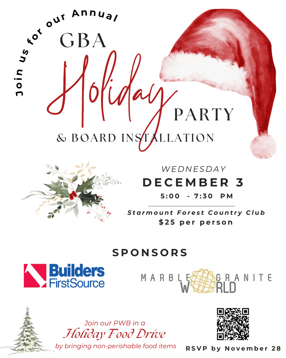 Amanzi Marble & Granite 703 Park Lawn Court, Kernersville, NCOur Builder & Remodeler Appreciation Night will be held at the Associates EXPO on Thursday, November 13 from 5:00-7:00 pm at Amanzi Marble & Granite - located at 703 Park Lawn Court - Kernersville. Please Note…this annual event is NOT a general membership meeting…it is an Invitation-Only for GBA Builder & Remodeler members to meet with exhibiting Associate members. Bring your business card(s) for check-in and prize drawings. There… Read More